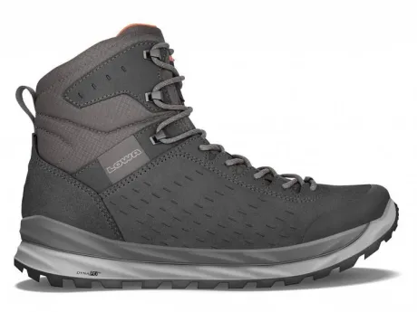Deze boot in grijs combinatie nubuck is voor veel doeleinden geschikt. Door zijn flexibiliteit is die zowel voor dagelijks gebruik geschikt. Doordat die tegelijkertijd de nodige stabiliteit biedt is die ook geschikt voor korte uitstapjes op het terrein. De zool zorgt voor de nodige demping en optimale grip. Ze zijn gevoerd met GTX en zijn dus wind en waterdicht en hebben een uitneembaar voetbed. De onderwerken zijn van PU wat licht van gewicht en slijtvast is. Na jaren vergaat Pu en u heeft er langer plezier van als ze regelmatig gedragen worden. ||De fabriek van Lowa staat in Duitsland en ze maken hoogwaardige (berg) wandelschoenen. De fabriek van Lowa staat in Duitsland en ze maken hoogwaardige (berg) wandelschoenen.