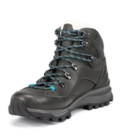 Bergwandelboot van Hanwag op een AB categorie in zwart Yakleer met chroomvrij leer gevoerd. Om werkelijk van iedere stap te kunnen genieten, is de Bangri Lady vervaardigd uit soepel yakleer. Bij de manchet is hij extra soepel. Een flexzone bij de hiel optimaliseert de pasvorm. De Vibram zool biedt een uitstekende demping en een hoge flexibiliteit.De hielversteviging is van leer en er is een flexzone bij de hiel voor een soepele pasvorm. De voetbedden zijn uitneembaar. ||Hanwag maakt al sinds 1921 hoogwaardige wandelschoenen. Alles wordt in Europa gemaakt en ook alle grondstoffen, leer enz. komt uit Europa. Er is 1 uitzondering en dat is het Yakleer dit komt uit Mongolie